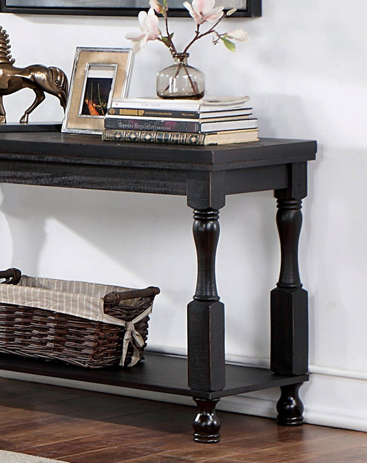 Rustic Style Antique Black 1pc SOFA TABLE Open Bottom Shelf Plank Style Table Top Living Room Furniture