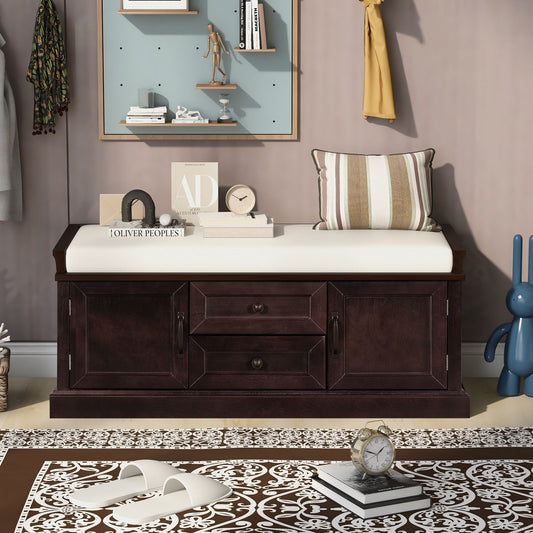 Storage Bench with 2 Drawers and 2 Cabinets,Shoe Bench with Removable Cushion for Living Room,Entryway